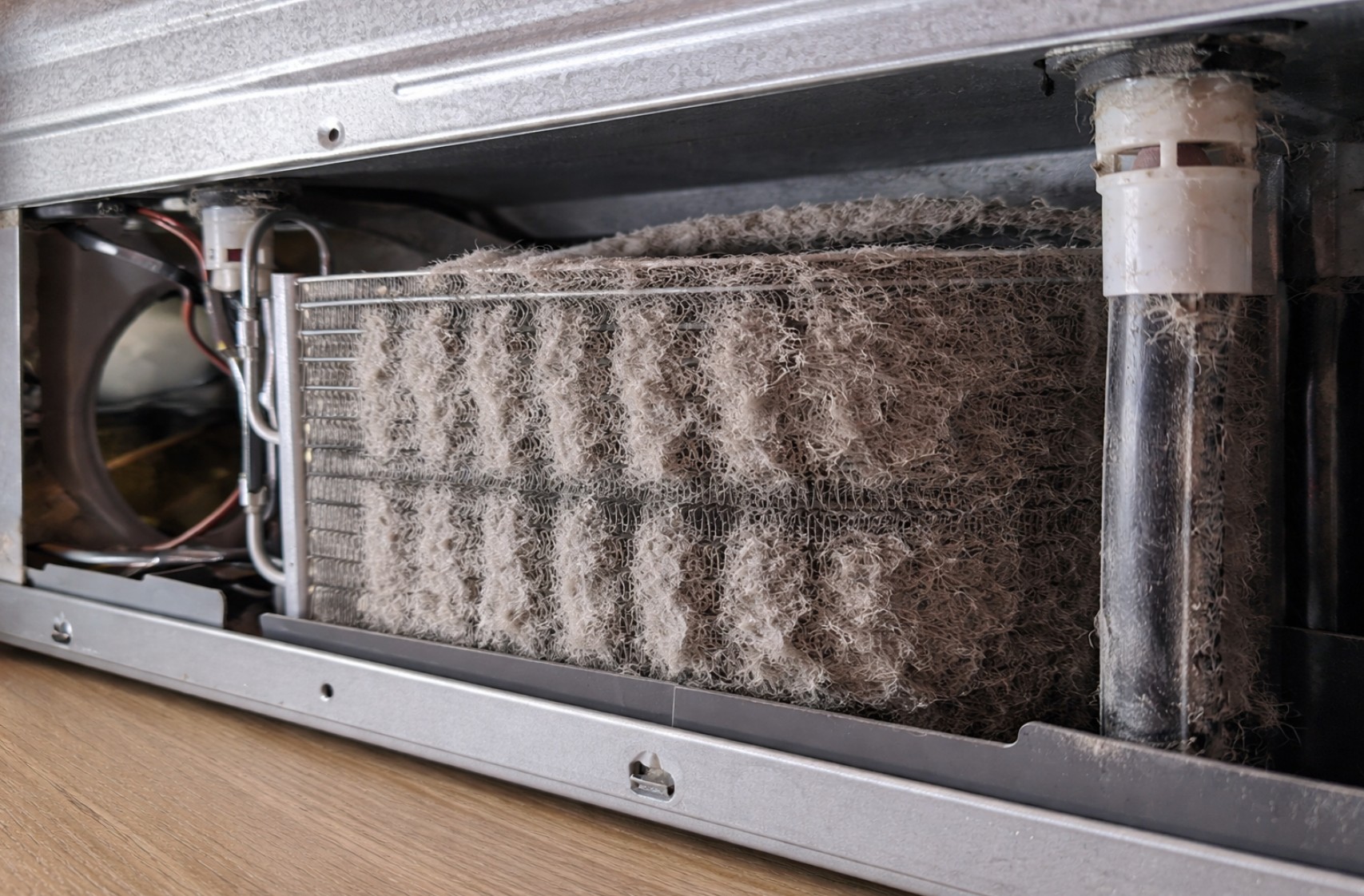 - Dirty condenser coils — dust buildup prevents heat from escaping